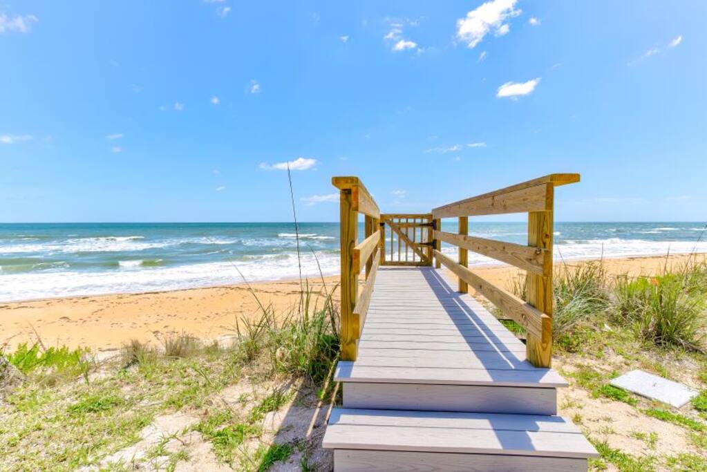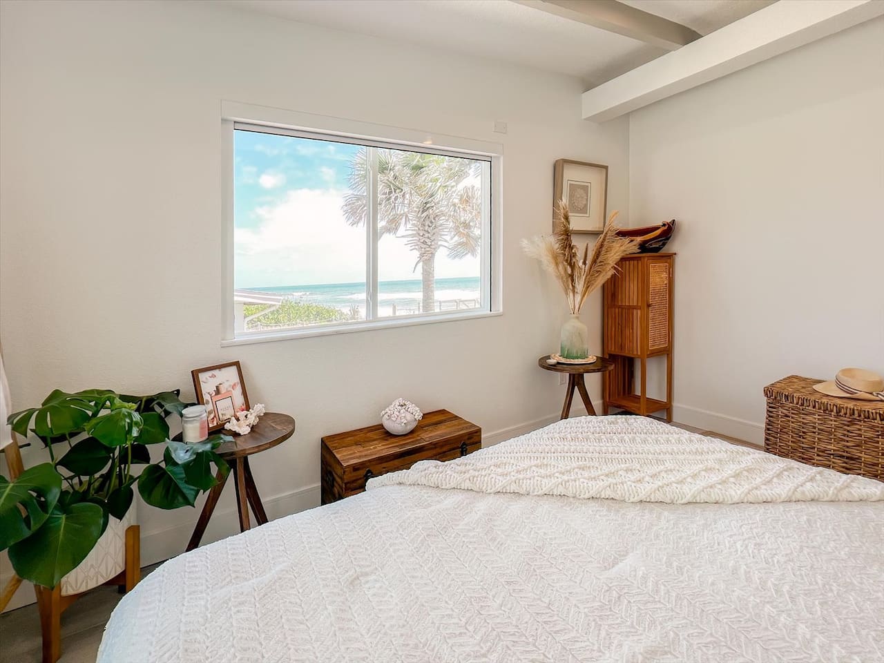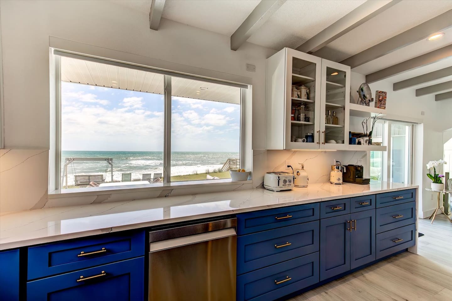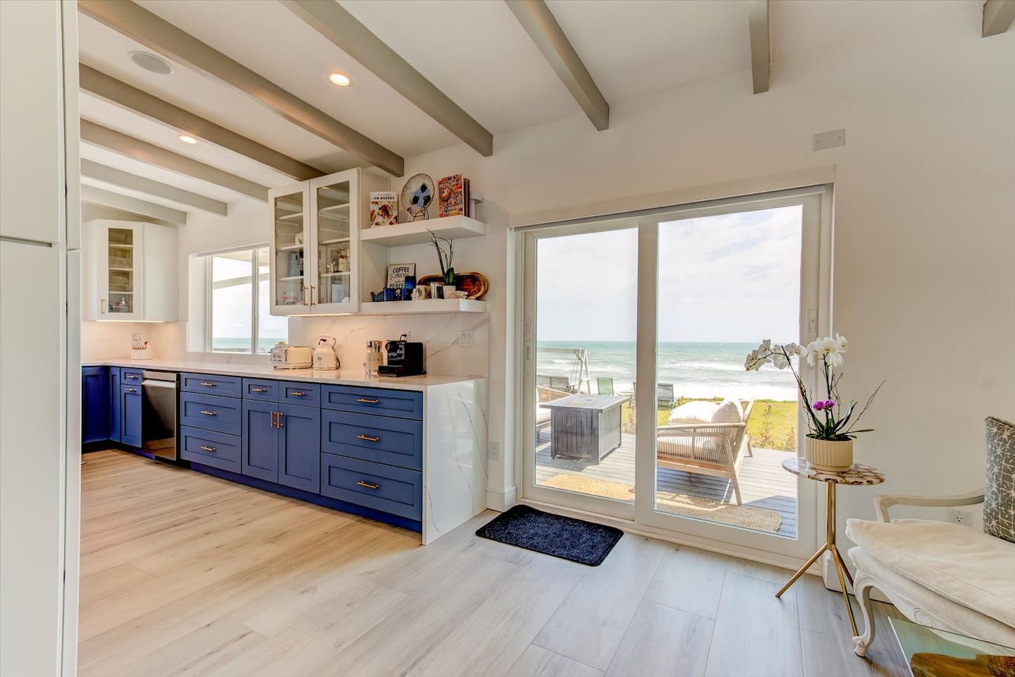 Welcome to your ultimate oceanfront escape in Beverly Beach, Florida—nestled just north of charming Flagler Beach and perfectly positioned for peace, privacy, and panoramic views. This fully remodeled 3-bedroom, 3-bathroom beachfront home offers a seamless blend of vibrant coastal design, thoughtful amenities, and direct access to your own private stretch of sand. Whether you're looking for a relaxing family getaway, a beach retreat with friends, or a restful work-from-anywhere experience, this home delivers comfort, style, and unforgettable sunrises over the Atlantic. ✦ Coastal Living, Reimagined ✦ Step inside to discover a space that feels fresh, colorful, and effortlessly beachy. The interior has been completely reimagined with a vibrant coastal décor—crisp white walls, cheerful accents, and natural textures inspired by the sea. Every room is designed to evoke the carefree joy of coastal living, with large windows and patio doors that flood the home with natural light and offer stunning views of the ocean from multiple vantage points. 3 bedrooms: Comfortably sleep up to 8 guests with 3 plush queen beds and 1 luxurious king bed, each with high-quality linens, soft lighting, and space to unpack and unwind. Not to mention the room darkening blinds. 3 full bathrooms: All newly renovated with modern fixtures, coastal-inspired tile, and walk-in showers—perfect for rinsing off after the beach or getting ready for a night out. Fully equipped kitchen: Whether you're prepping a seafood feast or just mixing up margaritas, the open-concept kitchen has everything you need—stainless steel appliances, cookware, blender, toaster, dishwasher, and more. You will love the cabinets and countertops and feel so spoiled while you prepare your meals in this space! Coffee + tea station: Start your morning with your favorite brew while gazing at the waves from the comfort of your kitchen or outdoor patio. Living & dining areas: Enjoy the open flow of the living space with cozy seating, a large smart TV, and plenty of room to gather around the dining table for meals, games, or planning your next beach day. WiFi & integrated speaker system: Stay connected (if you want to) and set the mood with your favorite music throughout the home. ✦ Outdoor Amenities That Shine ✦ When it comes to outdoor living, this home is in a league of its own. Step outside and you’ll find your own private beach access—no crowds, no noise—just soft sand, rolling waves, and unforgettable sunrises at your doorstep. Spacious patio: Grill up fresh fish or burgers on the propane grill and enjoy alfresco meals at the outdoor dining table while listening to the waves crash. Fire pit area: Gather around the fire pit after dark for stories, s’mores, or simply stargazing under the Florida sky. Outdoor shower: Perfect for rinsing off after a swim or surf session. Driveway: Ample space for your vehicles, plus a secure garage with an EV charging station for your electric vehicle - available upon request. ✦ Location, Location, Location ✦ This home is ideally located in quiet, residential Beverly Beach—just a 5-minute drive south to Flagler Beach’s eclectic shops, laid-back restaurants, and iconic pier, and a 30-minute scenic drive north to St. Augustine’s historic district. Nature lovers will enjoy nearby state parks, hiking trails, and opportunities for kayaking or paddleboarding. Whether you're waking up early to watch dolphins from your patio, enjoying a lazy afternoon nap with ocean breezes through the window, or spending an evening grilling and unwinding by the fire, this is the kind of beach house that brings people together and creates lifelong memories. → Come experience the vibrant charm of this Beverly Beach beauty—where the sand is soft, the sea is close, and the vibe is pure relaxation. We can’t wait to host you! #37762
